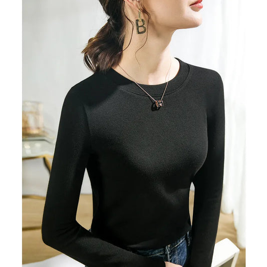 Slim-Fit Crew Neck Long Sleeve Knit Top