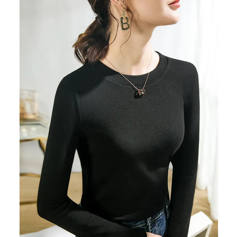 This slim-fit crew neck knit top is crafted from soft, lightweight fabric, offering a comfortable and stretchy wearing experience. The classic crew neck design and long sleeves provide a versatile base layer, while the slim silhouette flatters the figure—perfect for layering under jackets or wearing alone. Available in multiple solid colors, it suits daily wear, office styling, or casual outings, easily pairing with pants, skirts, or jeans for a polished look. Key Features Soft lightweight fabric for comfort and stretch Classic crew neck with long sleeves (versatile base layer) Slim fit for a flattering silhouette Multiple solid color options Suitable for daily wear, office, and casual outings
